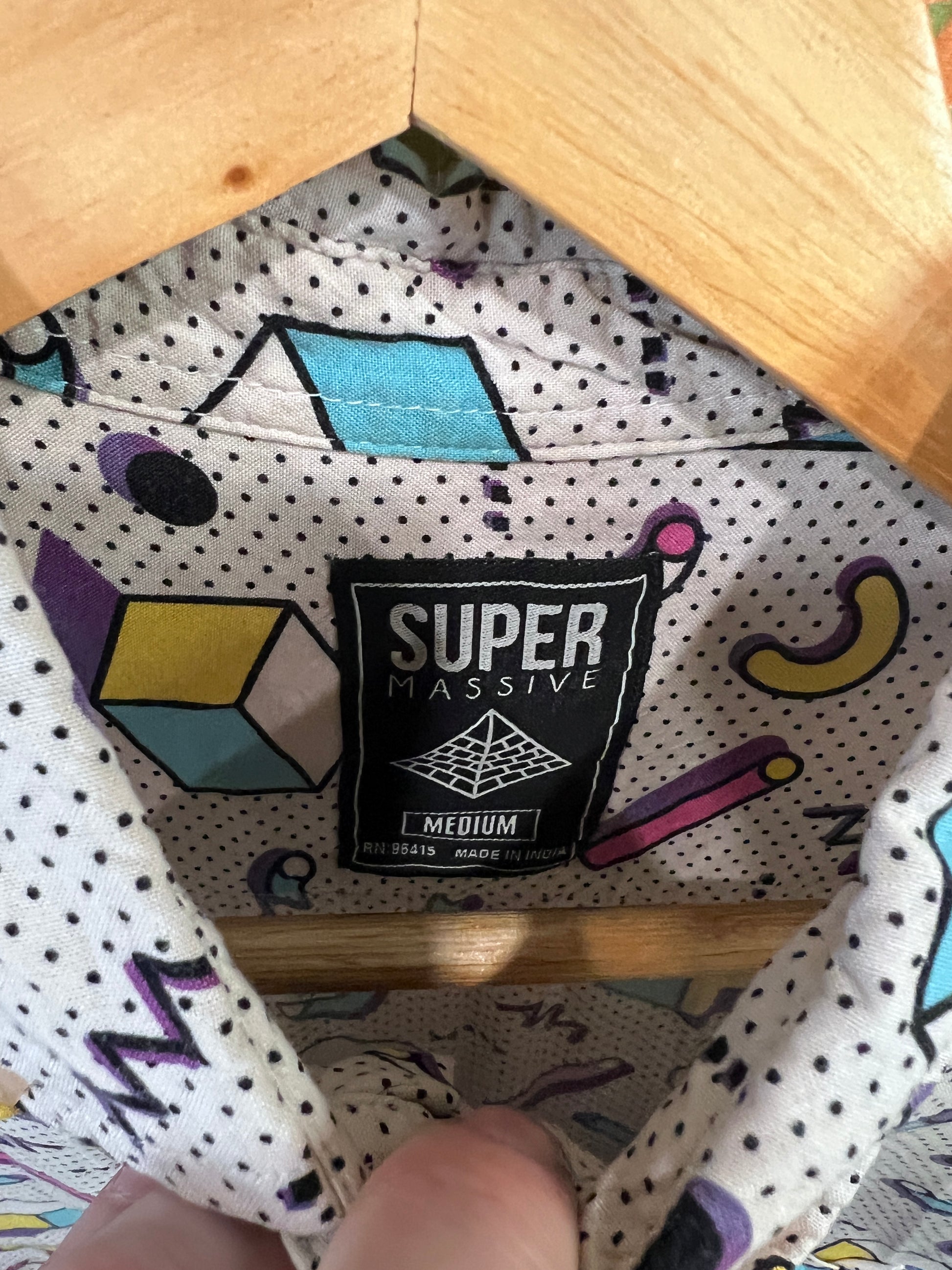 Get playful with this 90's inspired all over pattern short sleeve! Made from soft and buttery 100% Rayon fabric, it can be worn over a colorful t-shirt for a casual look or on its own for a playful twist. Add some 90's flair to your wardrobe today!